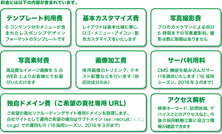 ※フルスクラッチでのリクルーティングサイト制作(80万円〜)も承っておりますので、ご相談ください。